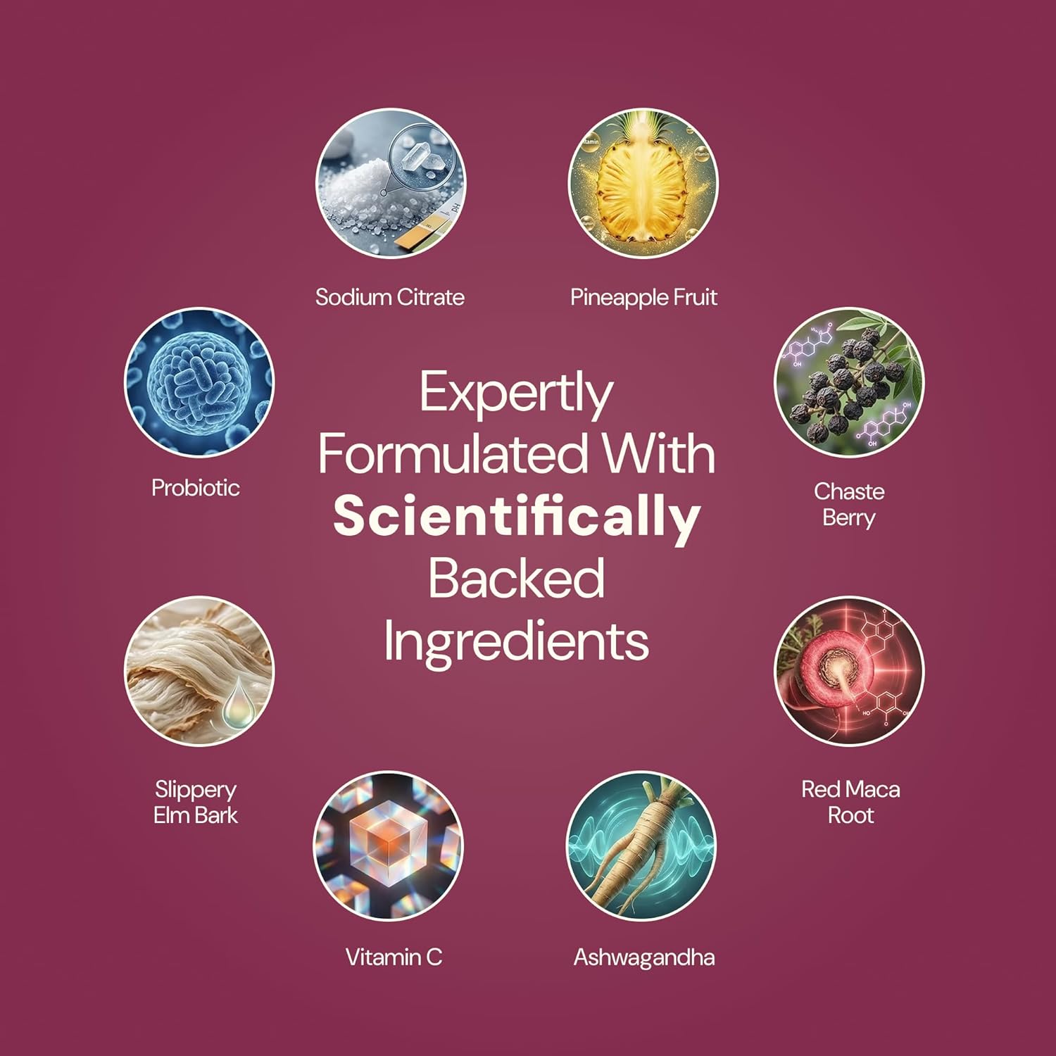 𝐁𝐀𝐋𝐀𝐍𝐂𝐄𝐃 𝐩𝐇 𝐚𝐧𝐝 𝐅𝐑𝐄𝐒𝐇 𝐂𝐎𝐍𝐅𝐈𝐃𝐄𝐍𝐂𝐄: Formulated with sodium citrate and pineapple fruit powder to naturally support healthy vaginal pH levels and freshness, helping you feel clean and confident every day.*