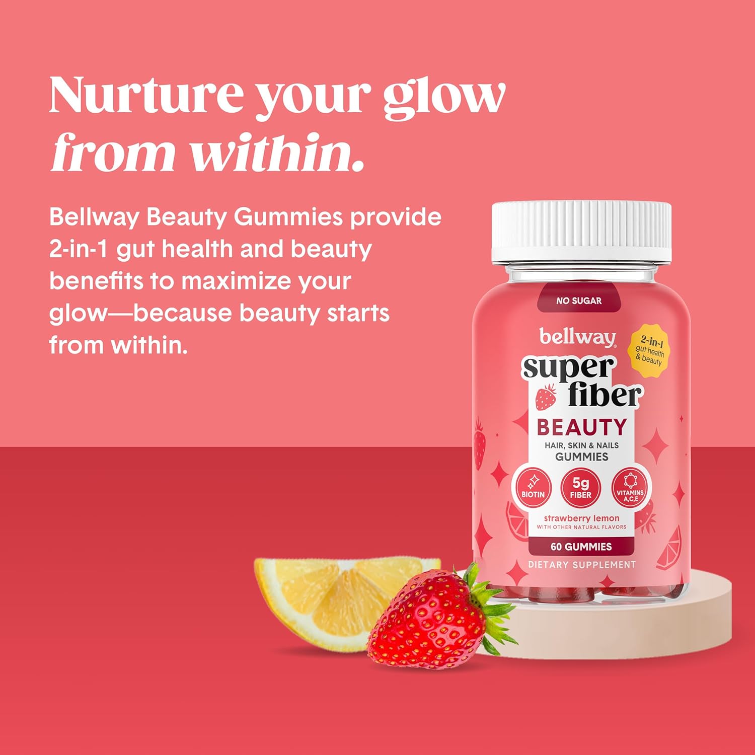 Glow From Within with Bellway Super Fiber Gummies + Beauty: These sugar free fiber gummies for adults feature inulin from chicory root fiber, biotin, and essential vitamins A, C & E to support digestive health, skin, hair, and nails.