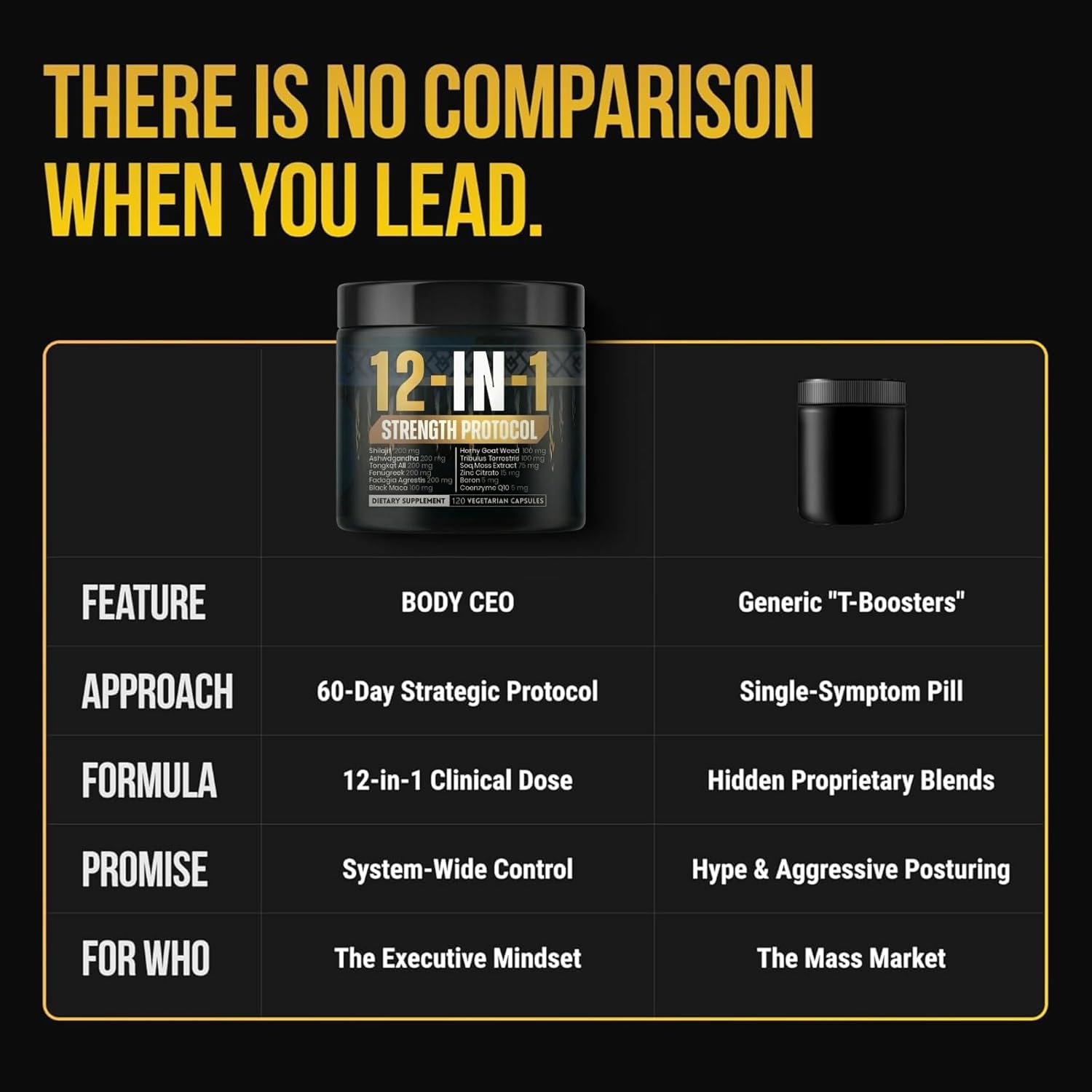 Body C.E.O. 12-in-1 Strength Protocol | Testosterone Booster for Men with Shilajit | Alpha Boost with Ashwagandha, Tongkat Ali, Zinc & Botanicals | Supports Energy, Strength & Vitality | 120 Capsules