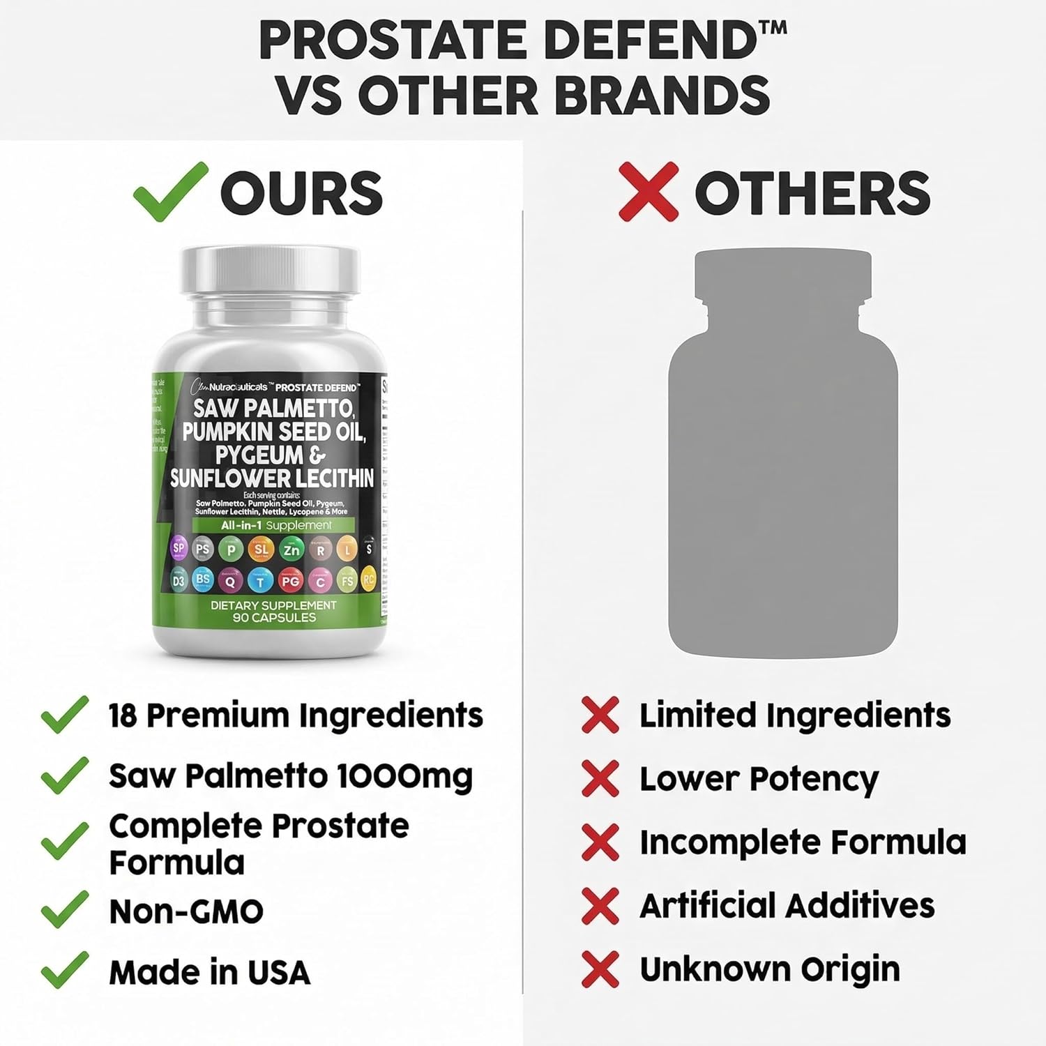 Introducing the Prostate Defend All In One Supplement – In addition to containing large milligram dosages of Saw Palmetto Extract For Men Prostate and many Pumpkin Seed Oil Extract, our formula also contains a whopping equivalent of Sunflower Lecithin Extract. This is a powerful alternative to less potent Saw Palmetto Herbal Supplements, Sunflower Lecithin, and Pygeum supplements on the market. A comprehensive prostate supplement for men supporting urinary flow, bladder health, and supporting urinary flow and bladder health to help you feel your best.