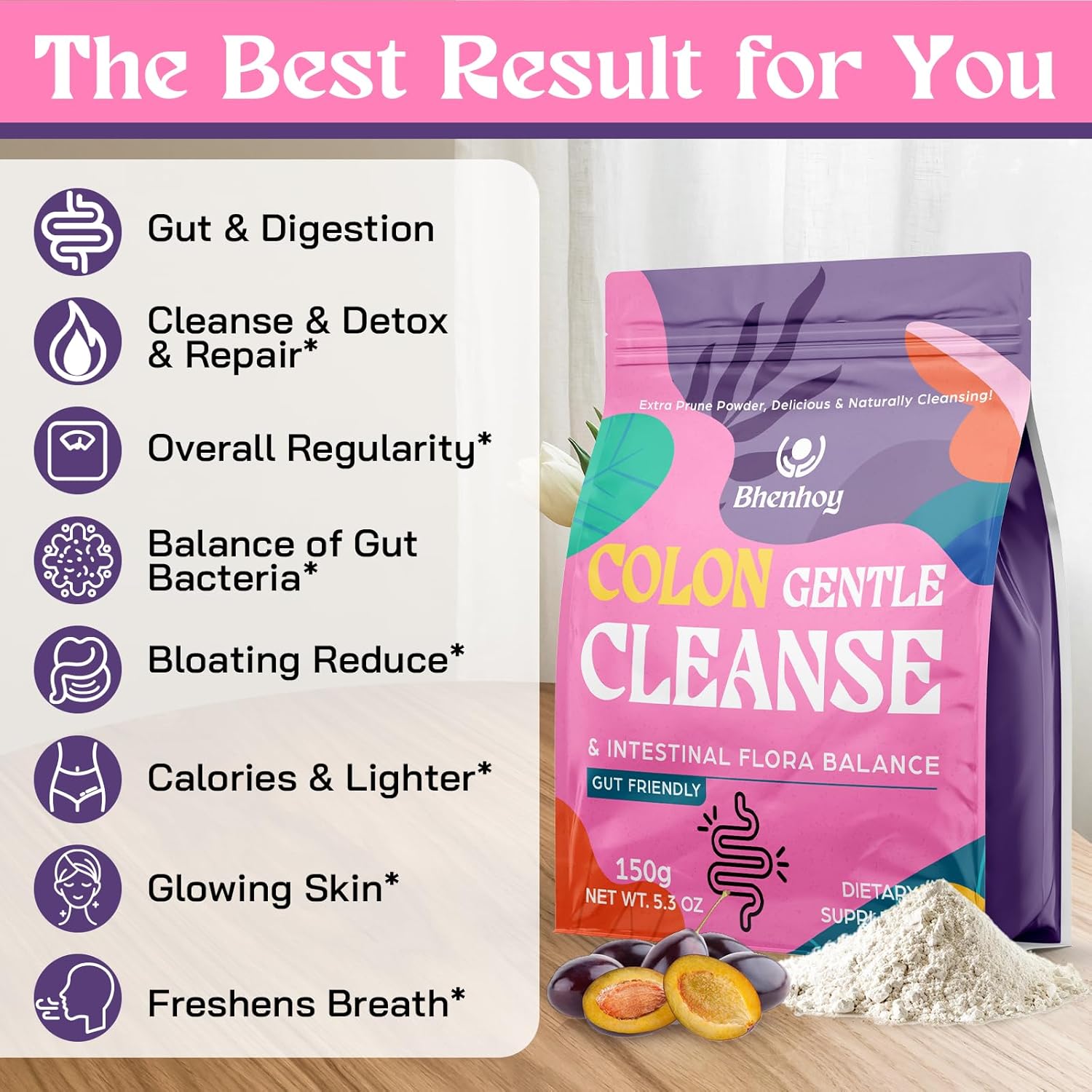 Colon Gentle Cleanse & Detox, Gut Cleanse Detox for Women & Men, for Digestion, Gut Health*, Intestinal Flora*, Constipation*, with 7 Probiotics, Psyllium Husk Powder & Fiber Supplement, Prune, 5.3 OZ
