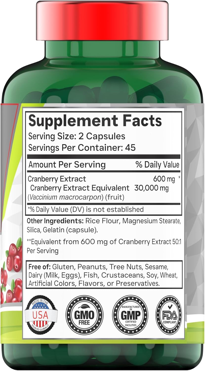 ✔️ Super Cranberry Concentrate Capsules – Triple Strength Highest Potency Formula