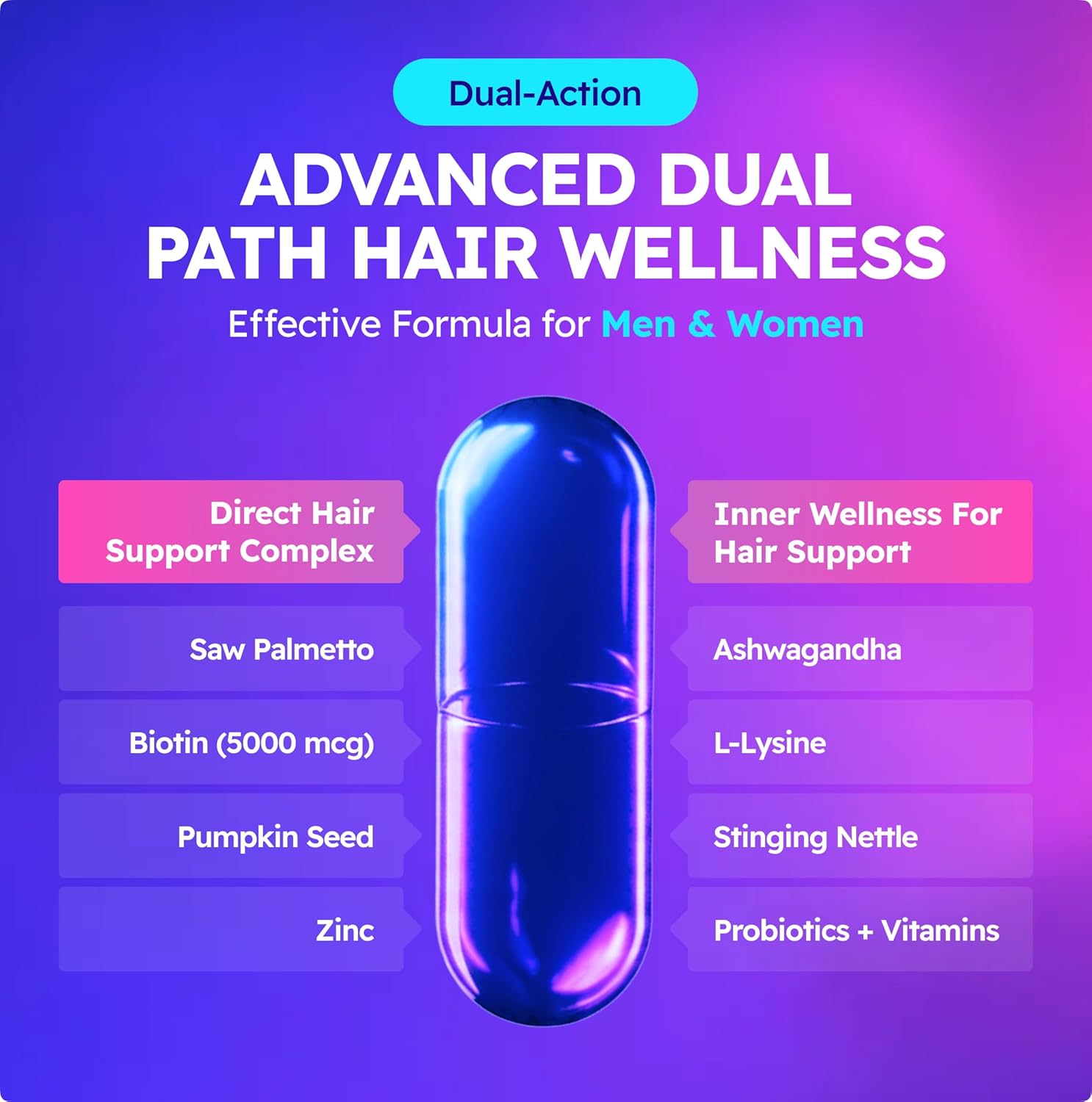 DUAL-ACTION HAIR & SCALP FORMULA: DHT Blocker Pro + proprietary blend with nourishing nutrients to support both direct hair wellness and internal balance for a holistic aproach to hair and scalp health.