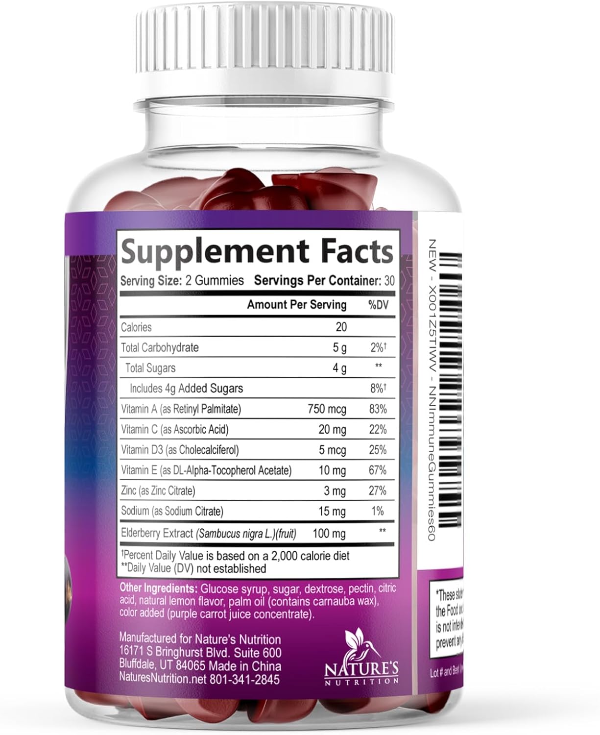 IMMUNE SUPPORT COMPLEX: Nature’s Nutrition Immune Support Gummies are easy, convenient, and delicious nutritional powerhouses packed full of Elderberry and Zinc; essential compounds for daily immune system support