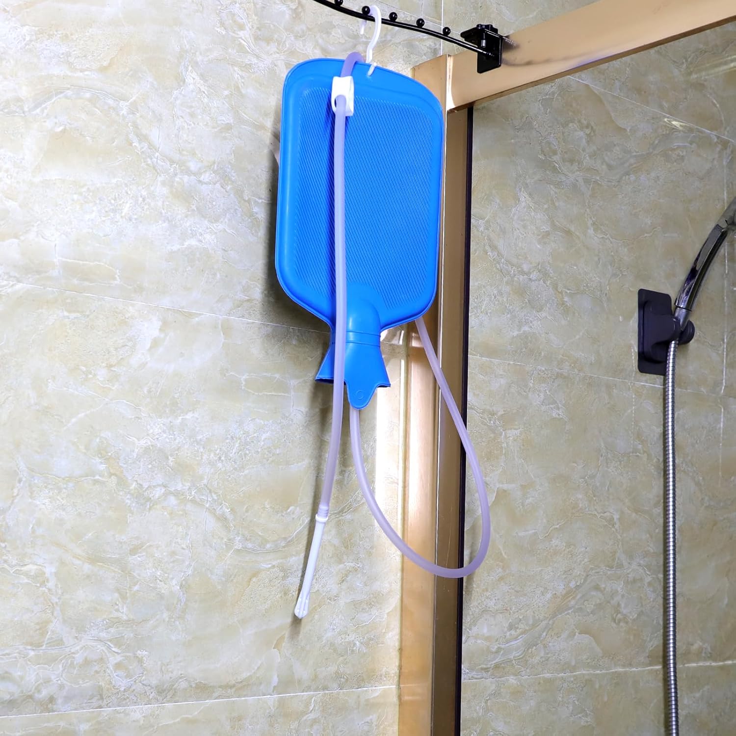 Enema Bag Kit with 5ft Hose Coffee Enemas at Home Water Shower Douche Colon Detox Cleanse Kit with Tubing, Tips, Clamp and Hook (Blue, 2 L)