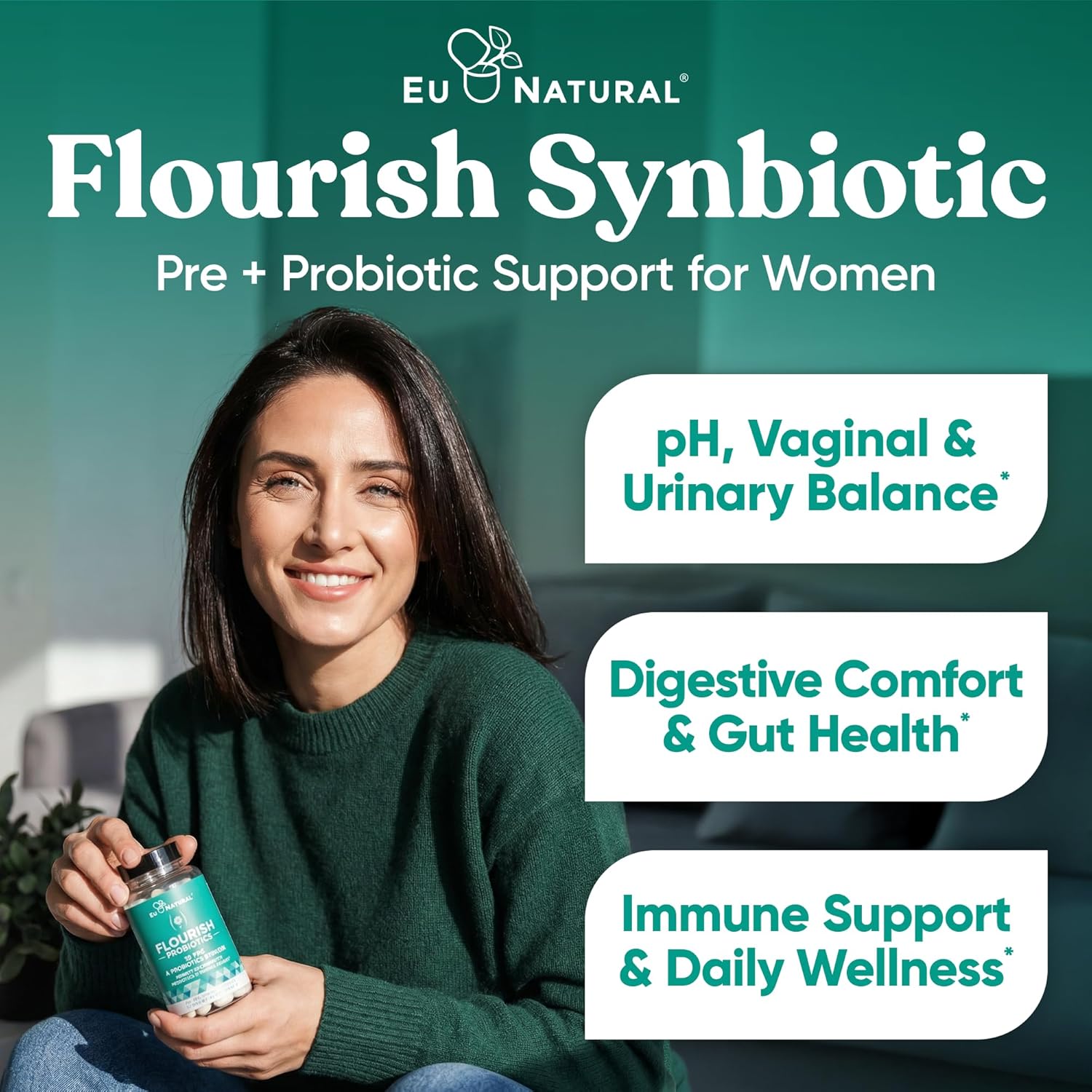 PROBIOTICS FOR WOMEN: Each capsule is formulated to support feminine health with Pro and Prebiotics for fast-acting and long-term gut wellness, reaching deep into the intestine. Reduce bloating, and support gut, immunity, digestion and vaginal health. Flourish is designed specifically for woman’s health, containing the ultimate probiotic and prebiotic formula to support digestive flora.