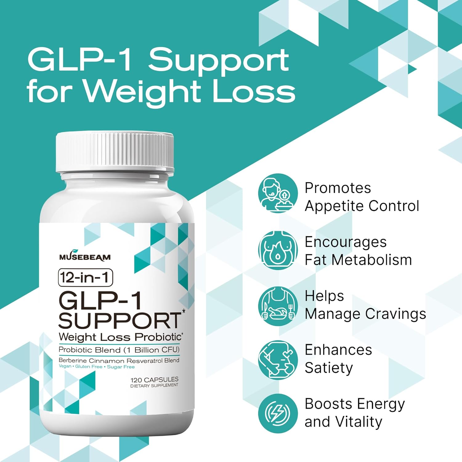 12-in-1 Weight Management Formula: MuseBeam 12-in-1 GLP-1 Support Weight Loss Probiotic Capsules deliver a robust 1500 mg blend including Berberine, Cinnamon, Turmeric, Resveratrol, Garcinia, Raspberry Ketone, and more to support healthy fat metabolism and appetite regulation. This carefully crafted formula complements active lifestyles by promoting balanced eating patterns, supporting natural weight goals, and encouraging gut and metabolic health.