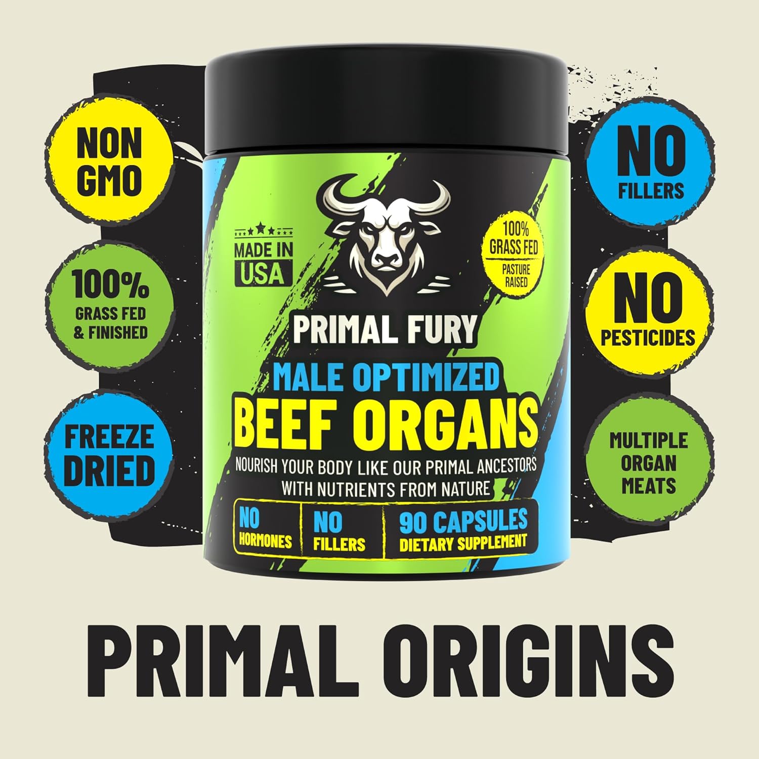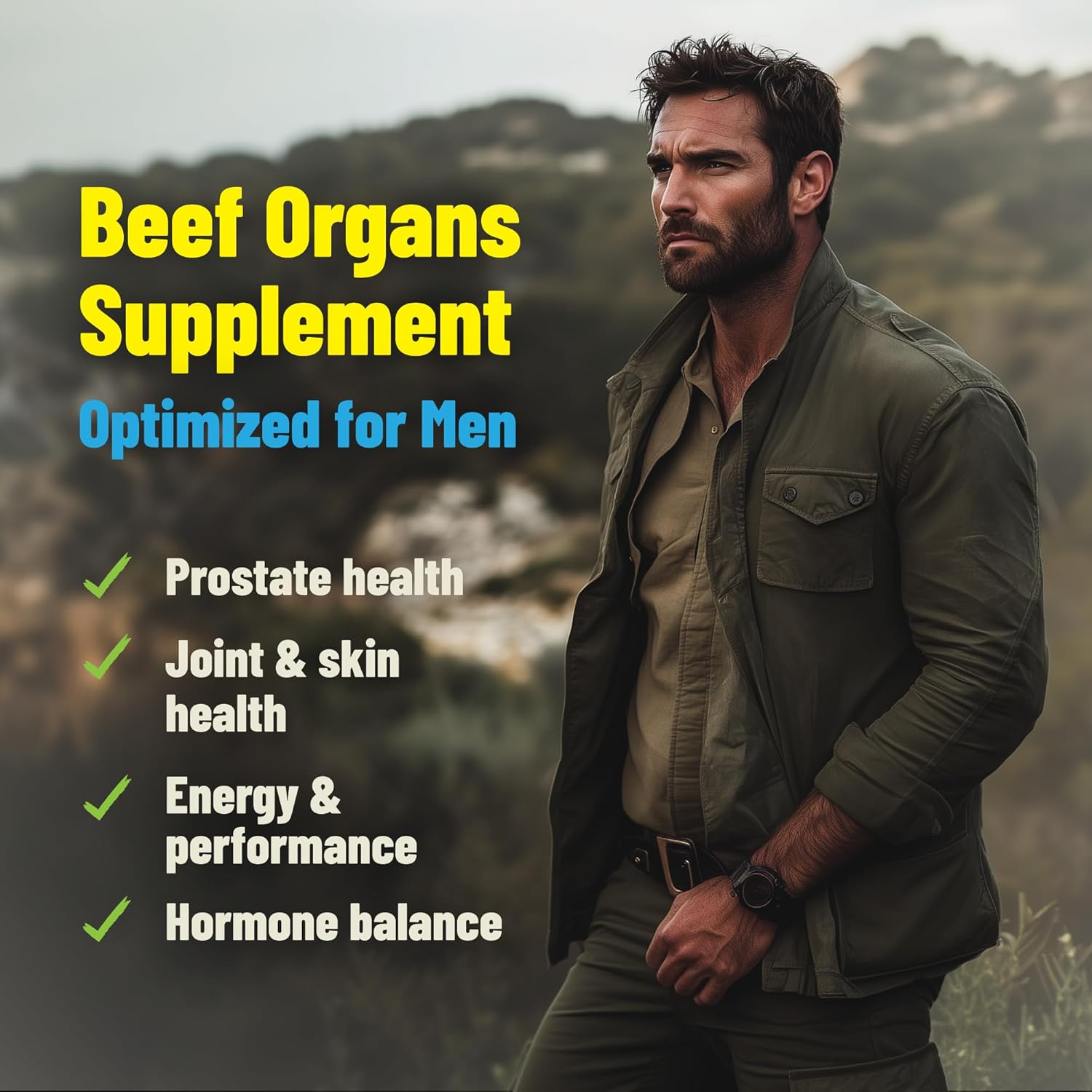 PREMIUM GRASS-FED BEEF ORGAN SUPPLEMENT FOR MEN – Drive prostate health, joint strength, and peak performance with our concentrated 6-organ blend. Each serving delivers potent nutrients men need: Zinc, CoQ10, B12