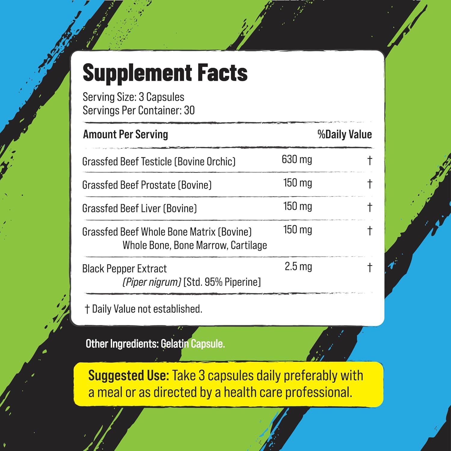 THE HUNTER’S BLEND – Zero compromises. We’ve united nature’s most powerful male-supporting organs: Testicle (hormone optimization), Prostate (men’s health), Liver (daily energy), and Bone Marrow (joint support) – engineered to maximize masculine vitality.