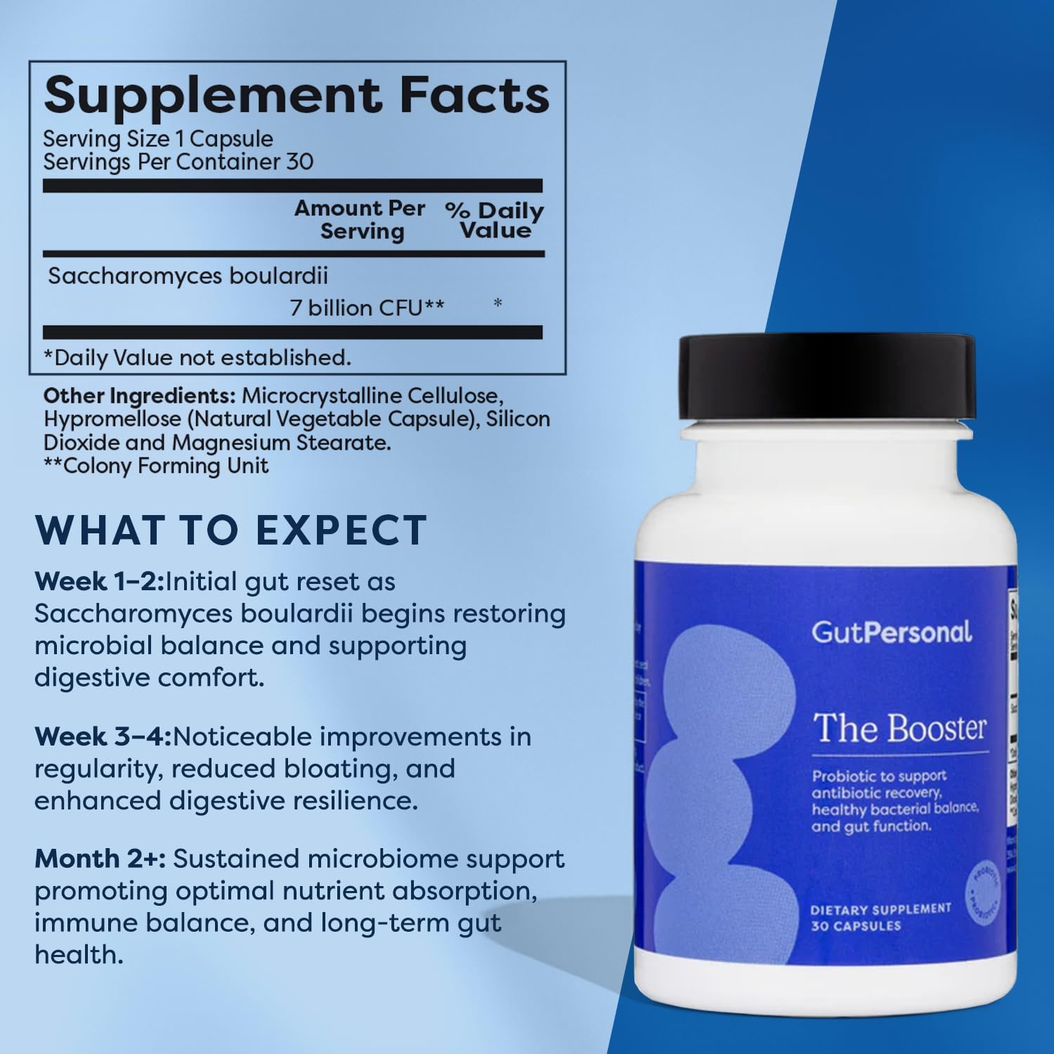 GutPersonal The Booster Targeted Probiotic for Gut Health: Support The Immune System with 5 Billion CFU Saccharomyces Boulardii, Capsules, 30 Servings