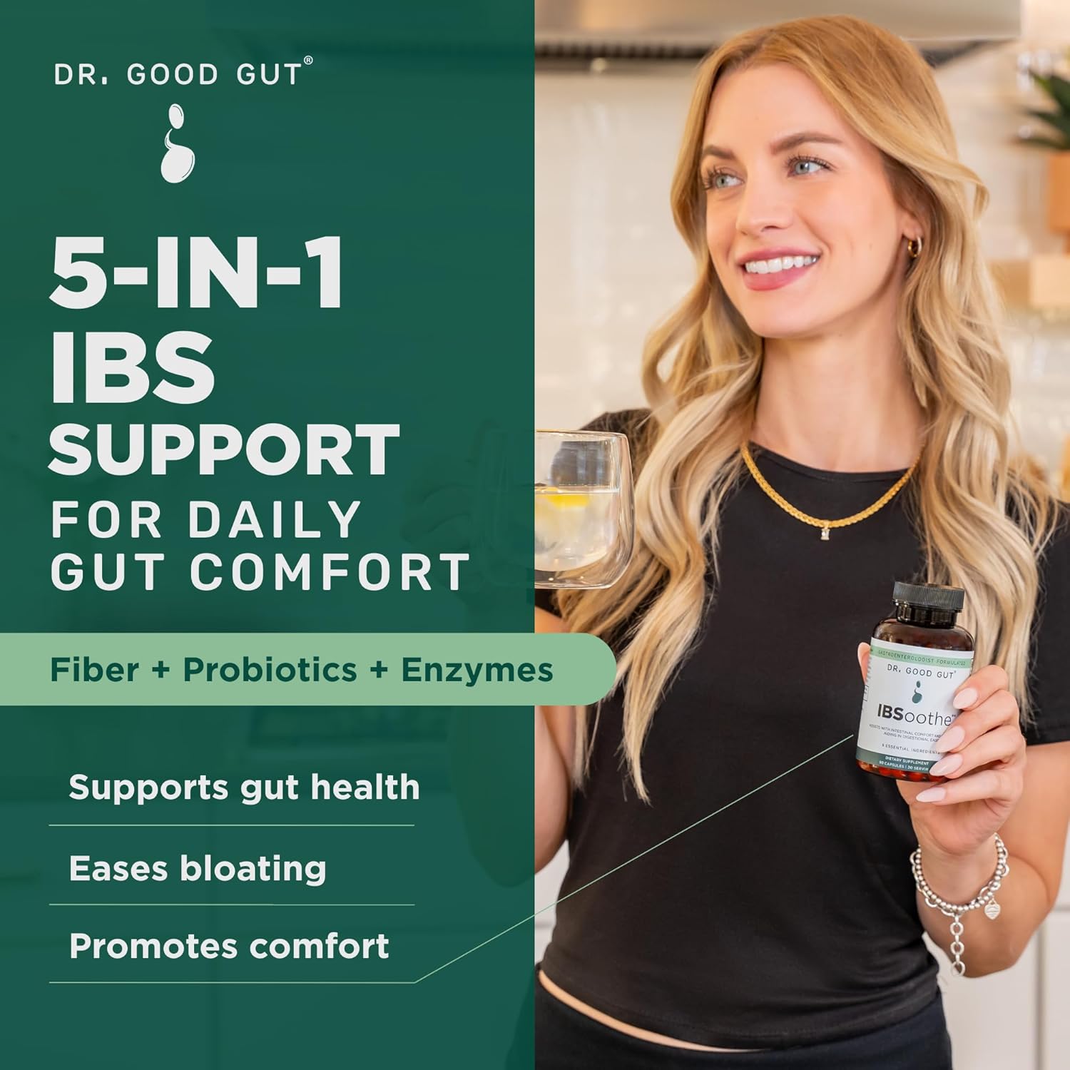 IBSoothe by Dr. Good Gut – Gut Health Supplement for Women & Men with Fiber, Probiotics, Enzymes & Peppermint Oil for Bloating Relief, Digestive Support, IBS Relief & Daily Gut Wellness – 90 Capsules