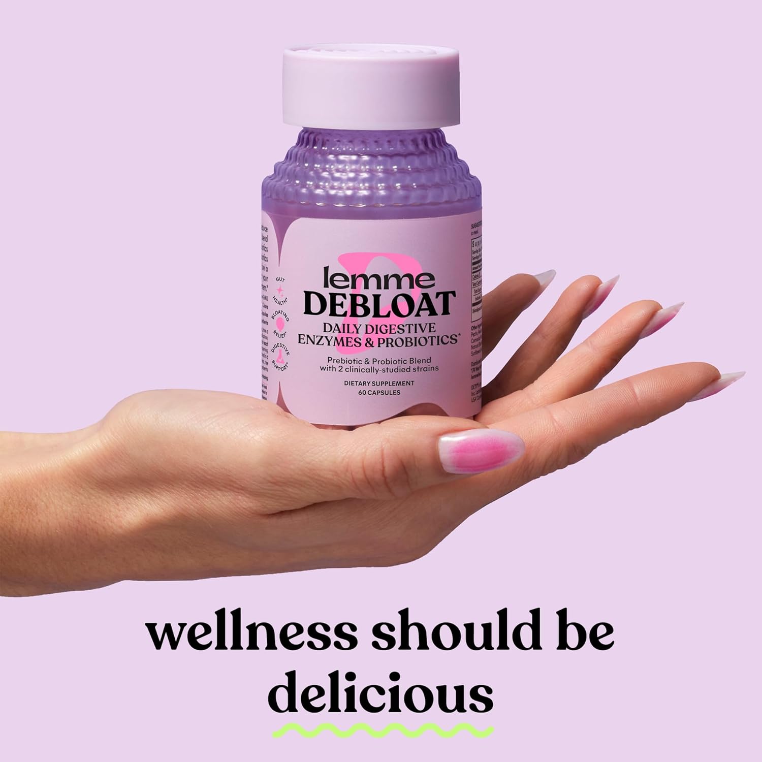 Lemme Debloat 3-in-1 Prebiotic, Probiotic & Digestive Enzyme Capsules for Bloating & Gas Relief – 2 Clinically Studied Probiotics w/5 Digestive Enzymes to Improve Digestion, Women & Men, (60 Count)