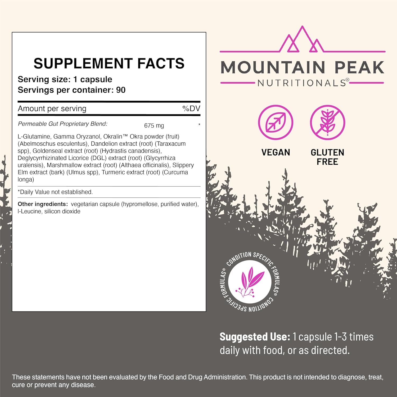Mountain Peak Nutritionals Permeable Gut Formula – Helps Protect Stomach & Intestinal Lining – Leaky Gut & Gastro Support Supplement – Hypoallergenic Dietary Supplement (90 Vegetarian Capsules)
