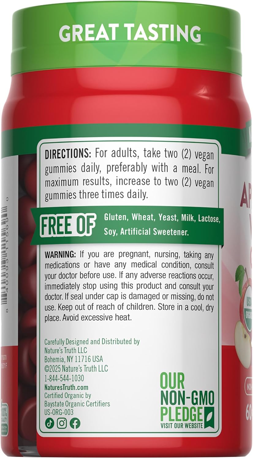Nature’s Truth Organic Apple Cider Vinegar Gummies | 60 Count | Vegan, Gluten Free & Non-GMO Supplement | USDA Organic | Apple Flavor