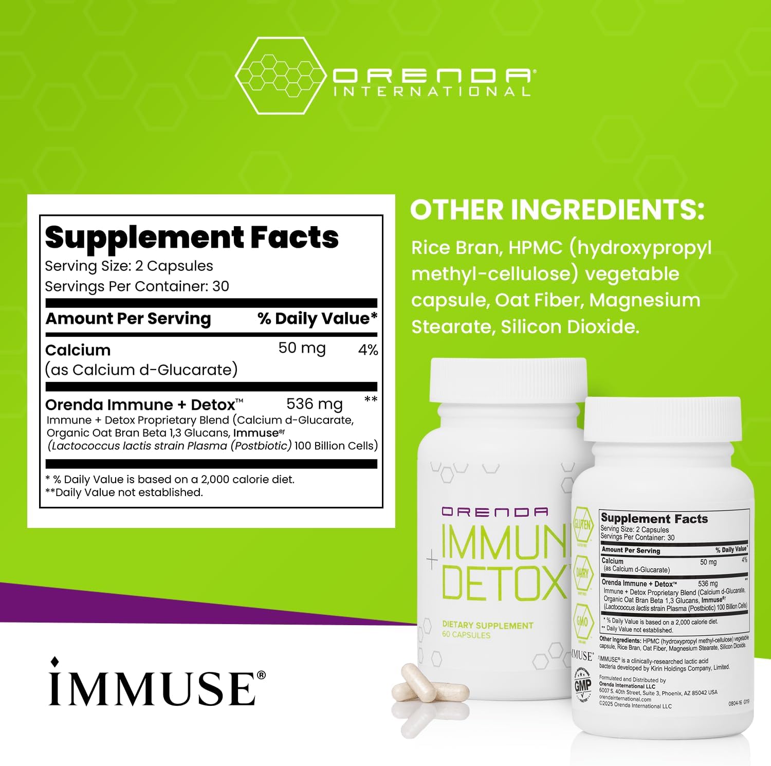 Orenda Immune + Detox – Specialized Formula with Calcium d-Glucarate, Beta 1,3 Glucans & IMMUSE® for Wellness and Balance – 60 Capsules