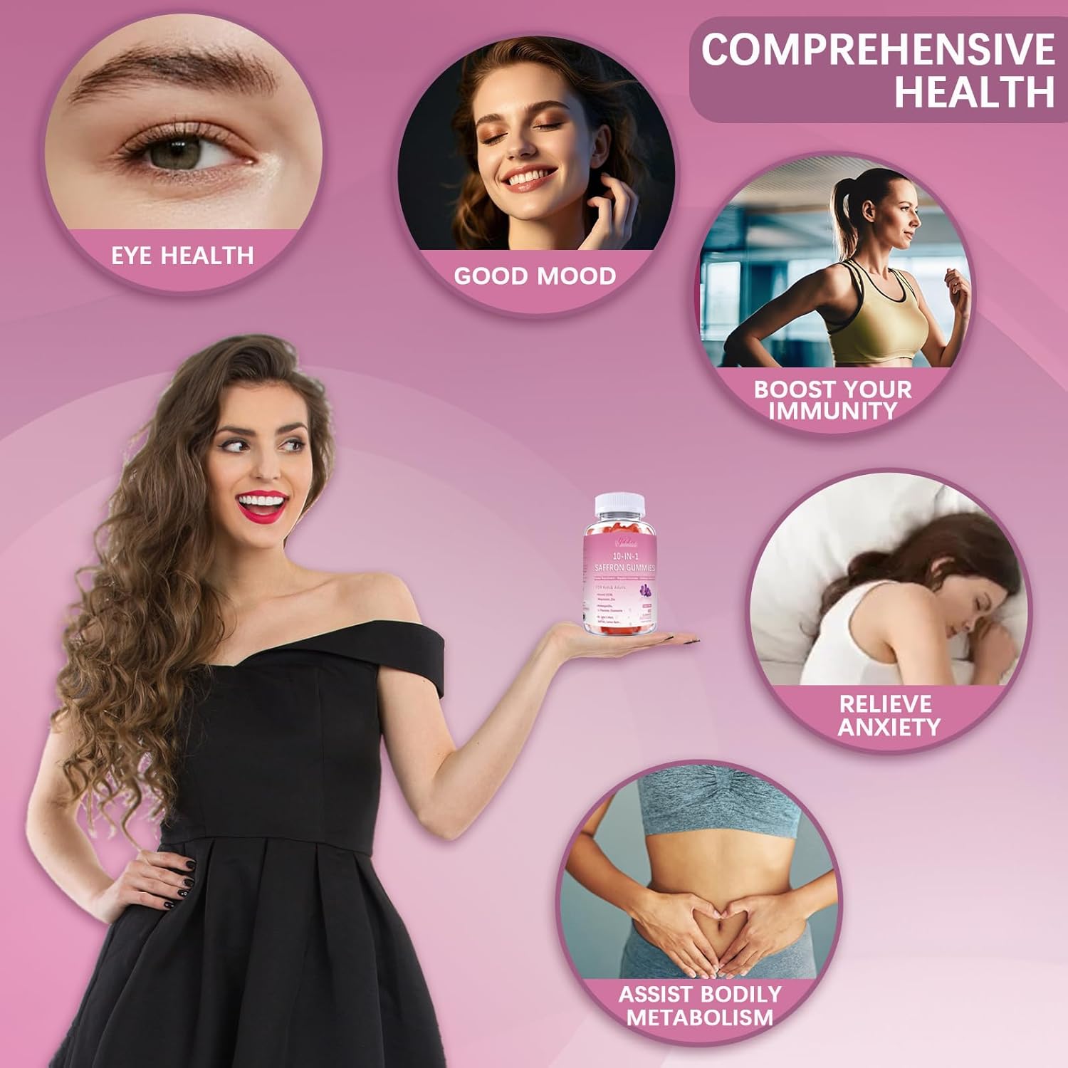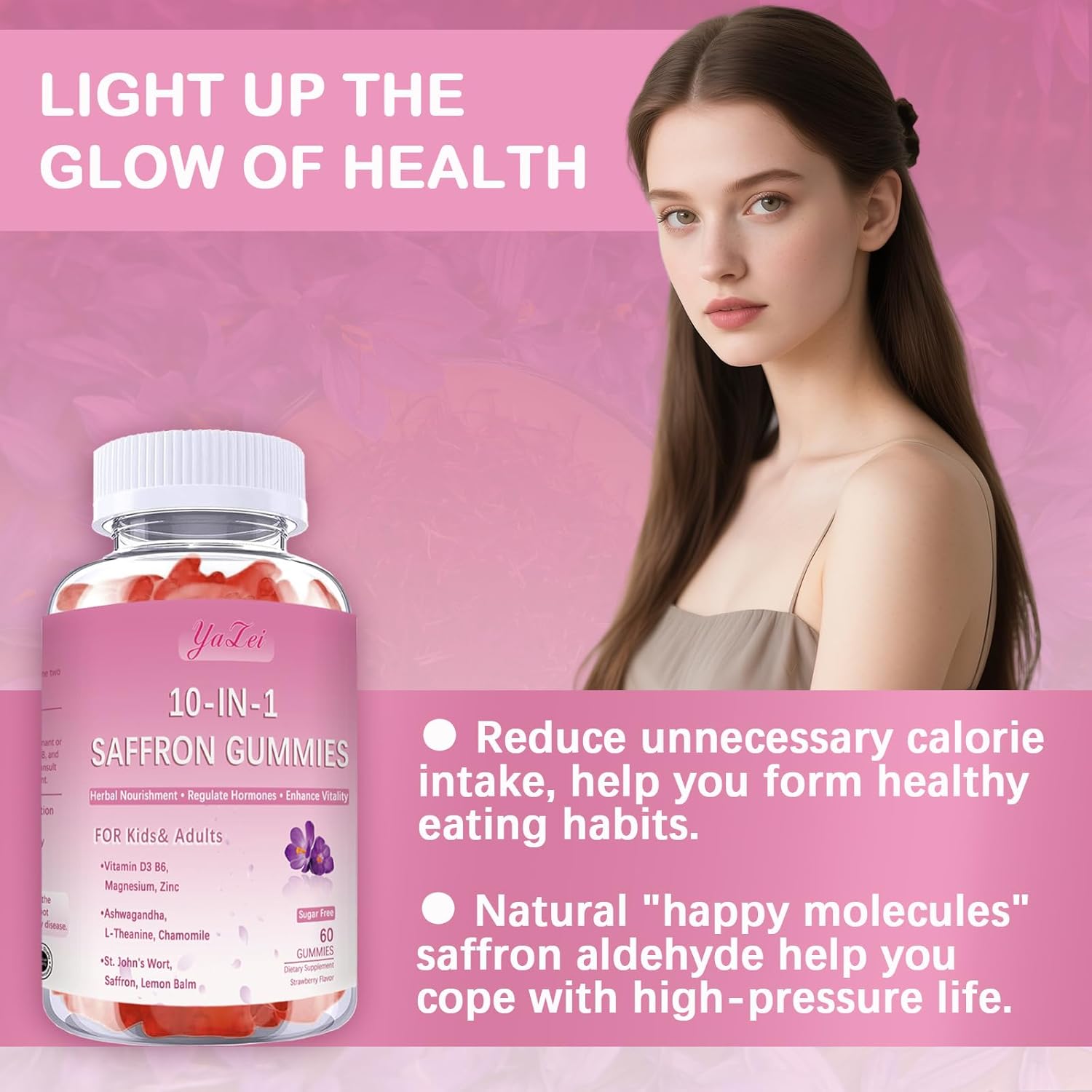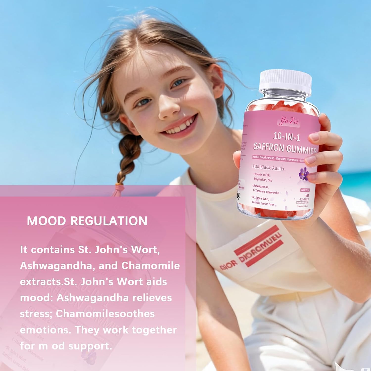10 in 1,Multi-Dimensional Nutrition: Each two gummies blend 10 core ingredients including saffron, L-theanine, chamomile, St. John’s wort, and lemon balm, while supplementing essential nutrients like vitamin D3, B6, magnesium, and zinc—delivering comprehensive, multi-dimensional support for your body’s needs.