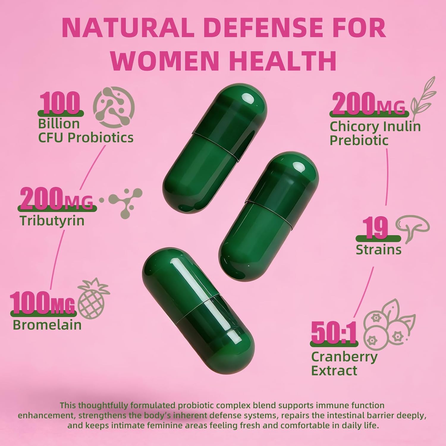 Vaginal Probiotics for Women, Akkermansia Probiotics & Prebiotics & Synbiotics Supplement for Vaginigal Health, pH Balance, Moisture, Odor Control | Non-GMO, Third-Party Tested | 100 Billion CFU