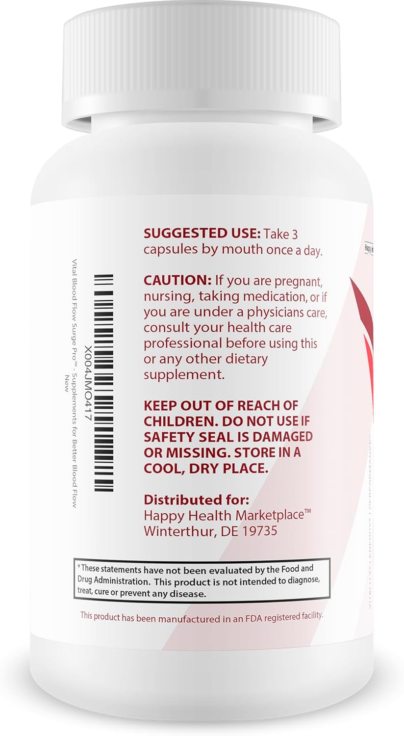 Vital Blood Flow Surge Pro – Improved Formula – Our Best Advanced Blood Flow Capsules – Pressure Supplement Circulation Pills – Vasodilation Vital Surge Male Blood Flow Vasodilator Supplements for Men