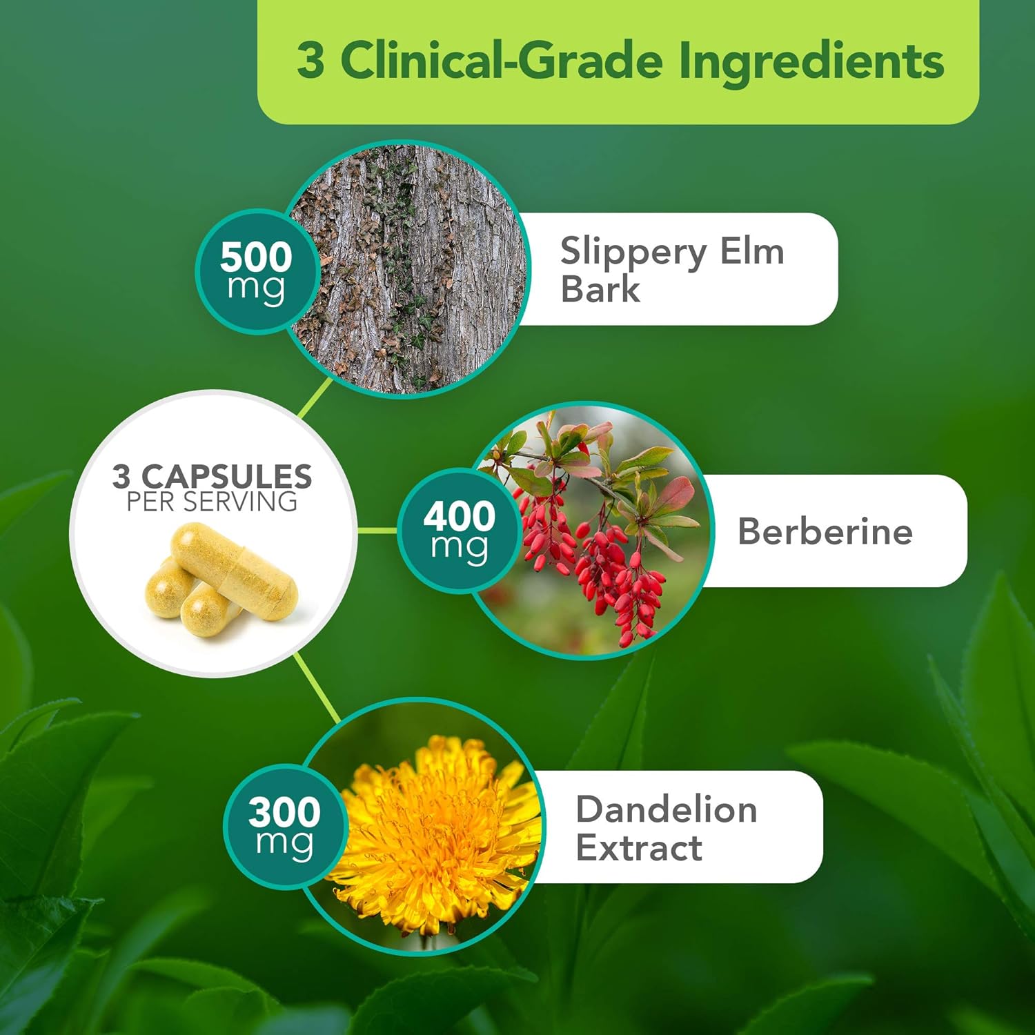 PROMOTE OPTIMAL DIGESTION: Soothing and synergistic herbal blend of Slippery Elm Bark, Berberine, and Dandelion supports the stomach, liver, gallbladder, pancreas, and intestines for optimal breakdown and absorption of foods and nutrients