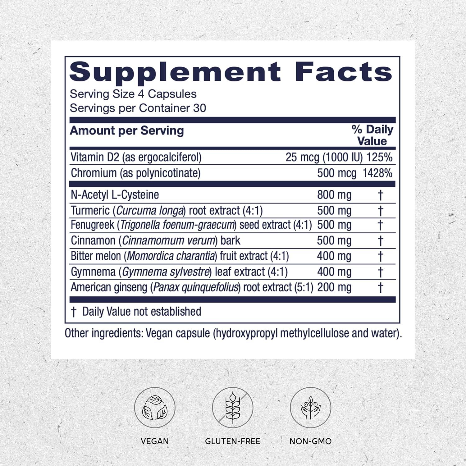 Blended Vitamin & Mineral Supplement: This herbal supplement with NAC and turmeric offers antioxidant support while chromium offers metabolism support*