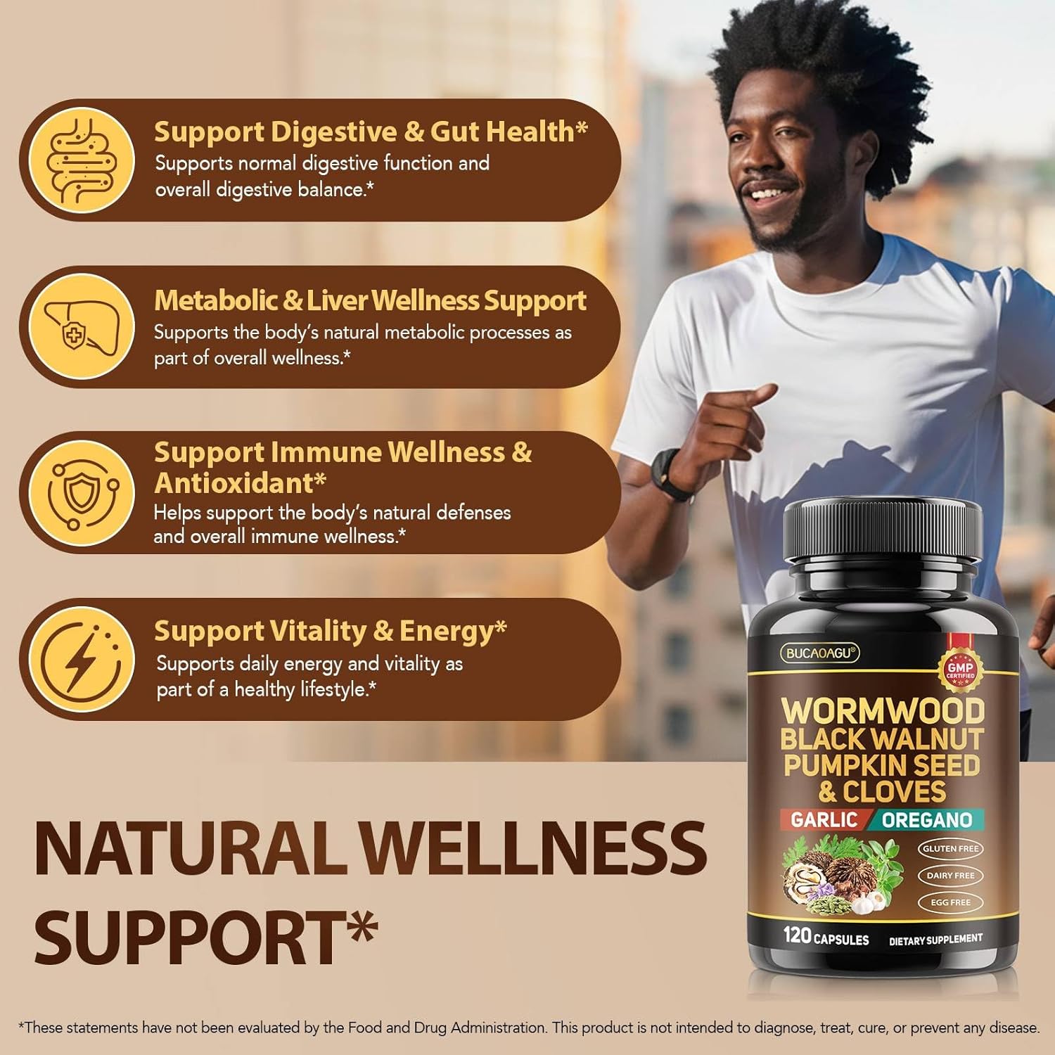 Advanced Wormwood Black Walnut Clense Blend: Combining over 20 carefully selected botanical extracts — including black walnut, wormwood, clove, pumpkin seed, oregano, garlic, and neem — this herbal blend delivers a well-rounded profile of traditional plant ingredients. Crafted to support normal digestive function and promote overall wellness, it offers a naturally balanced approach to your daily routine
