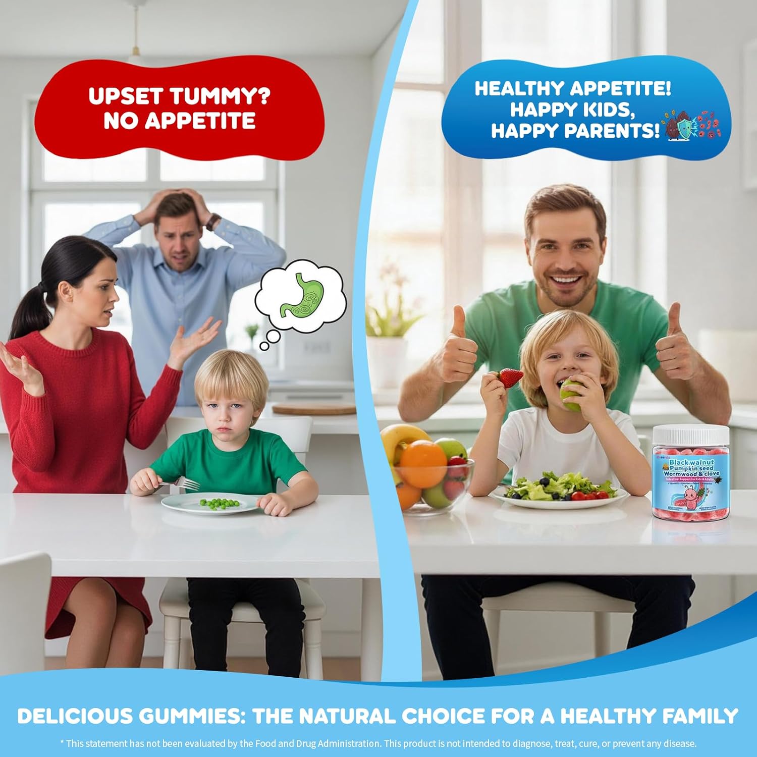 Wormwood Black Walnut Clove Para Clean for Humans & Kids, Herbal Gut Health Gummies with Wormwood, Pumpkin Seeds, Vitamin C, D3, Zinc, Probiotics for Natural Gut Cleanse, Immune Support – 60 Gummies